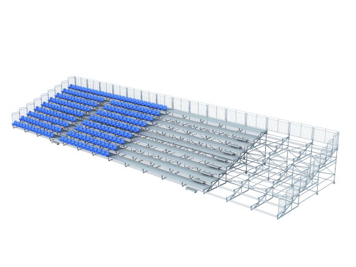 產品特點:看臺由單元模塊拼裝而成,可橫向、縱向增減模組以靈活滿足各種場地需求,主要結構(支架)采用矩形管、圓管及法蘭盤組焊而成,標準的支架、踏板、座椅、護欄、腳手架底盤,極大的簡化了看臺的安裝、拆卸過程,場地適應性強,是臨時的大型看臺系統(tǒng)的絕佳選擇。